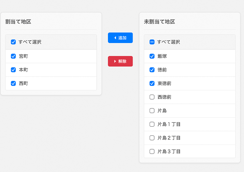 | 担当地区割り当て | 支所ごとに担当地区を割り当てることが可能。 |